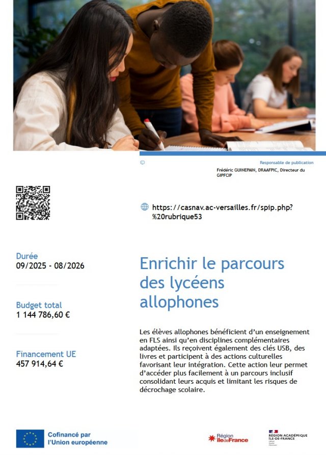 « Enrichir le parcours des lycéens allophones pour lutter contre le décrochage 2025-26 »